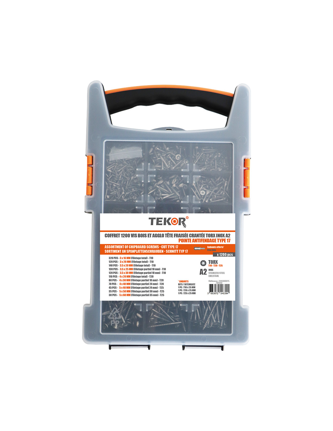 Set of 1200 Chipboard Screw Tekor Countersunk Head With Serration Torx Stainless Steel A2