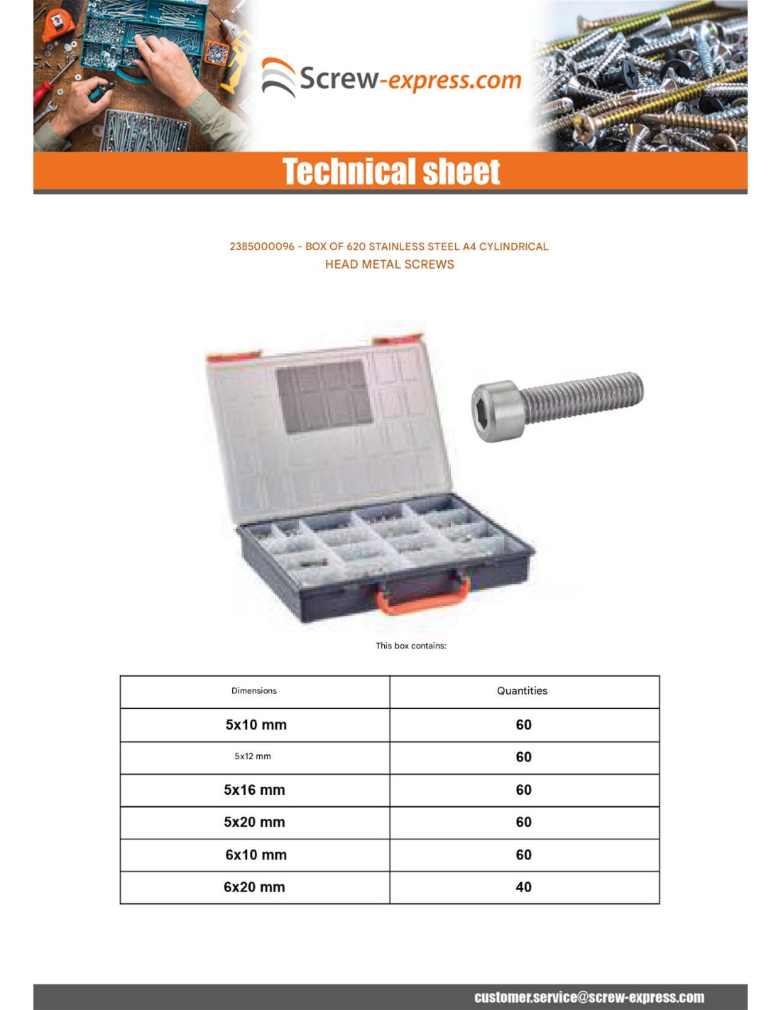 Set of 620 Machine Screw Socket Head Stainless Steel A4