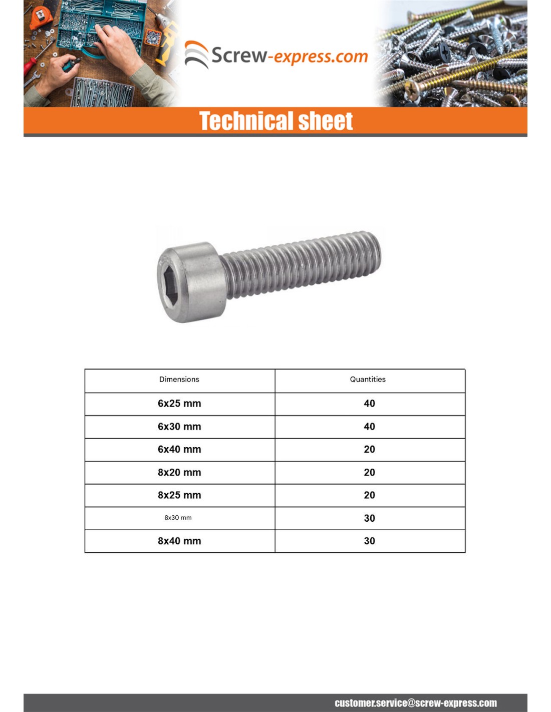 - MACHINE SCREW SOCKET HEAD BASSE/TROU HEXAGON SOCKET 8 STAINLESS STEEL A2