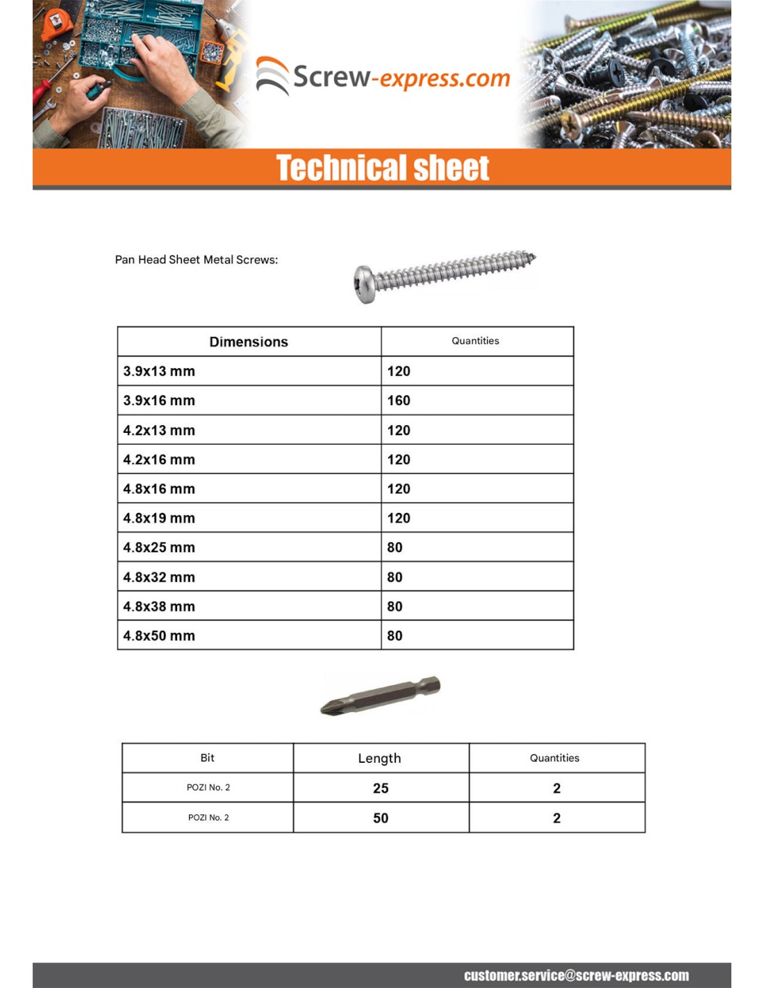 - 120 x Machine Screw Pan Head Pozi 4.2X13 Stainless Steel A4