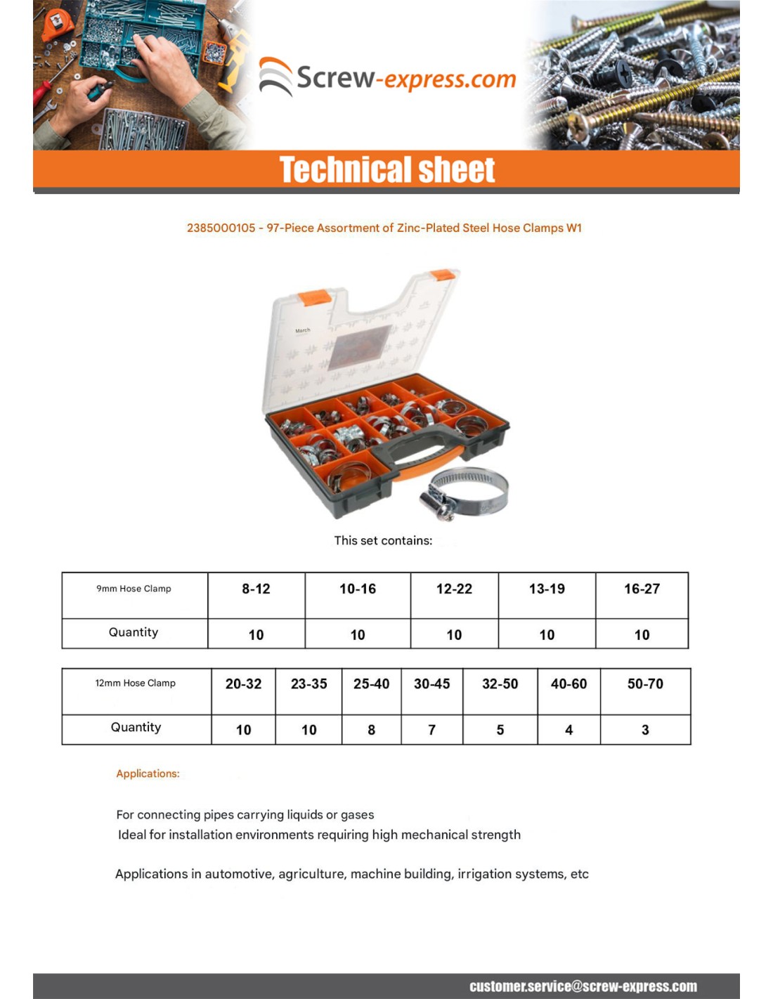 - 7 x Hose clamp Of Tightening 12MM 30-45