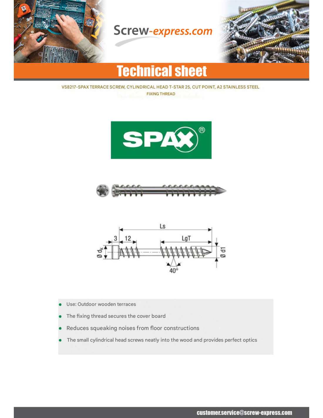 SPAX DECKING SCREW PAN HEAD TORX STAINLESS STEEL A2