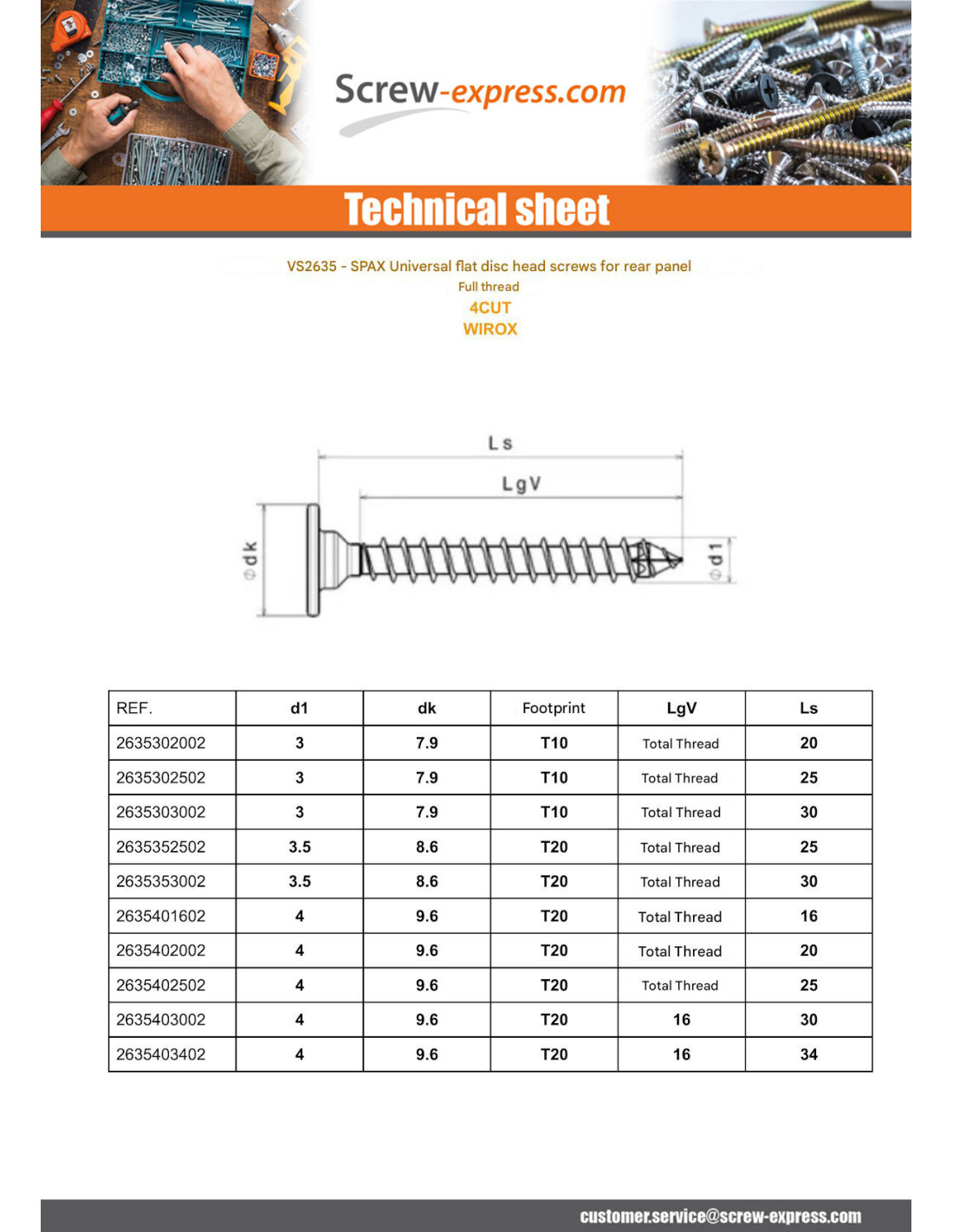 Spax Wood Screw Flat Head 4CUT 4X25 Full Thread T20 WIROX Other Reference : 0151010400253 4003530257995