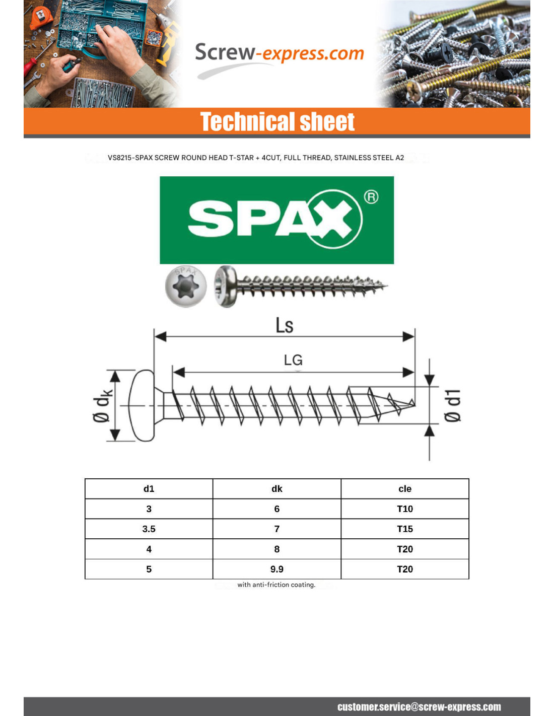 SPAX WOOD SCREW ROUND HEAD T-STAR+ TORX FULL THREAD STAINLESS STEEL A2
