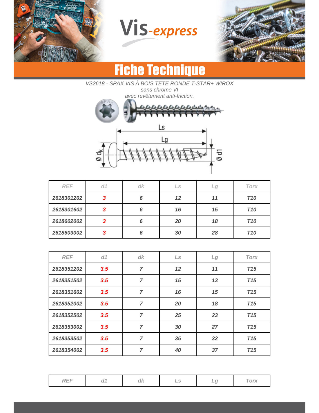Spax Wood Screw Round Head T-STAR+ T20 Wirox 6X70