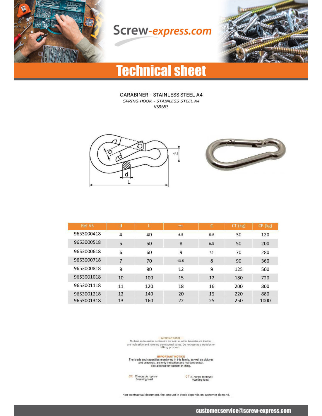 - SPRING HOOK STAINLESS STEEL A4
