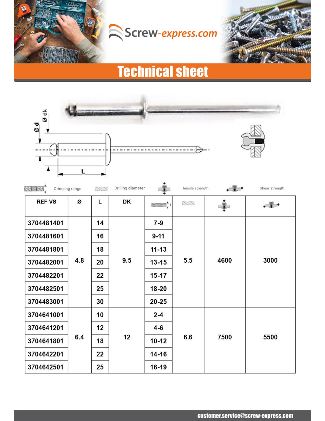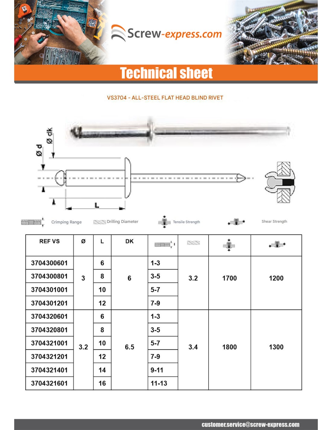 STANDARD RIVET BLIND ENTIRELY STEEL FLAT HEAD