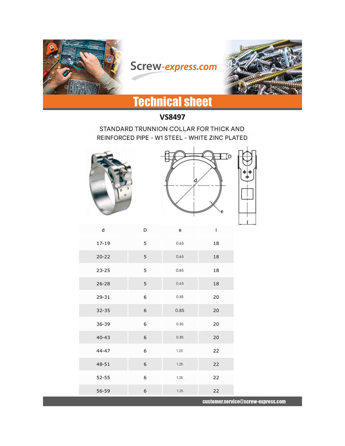 T-Bolt For Thick And Reinforced Pipe Plain W1Zinc Plated Diameter 80 to 85 Other Reference : TB80-85 3663072256347