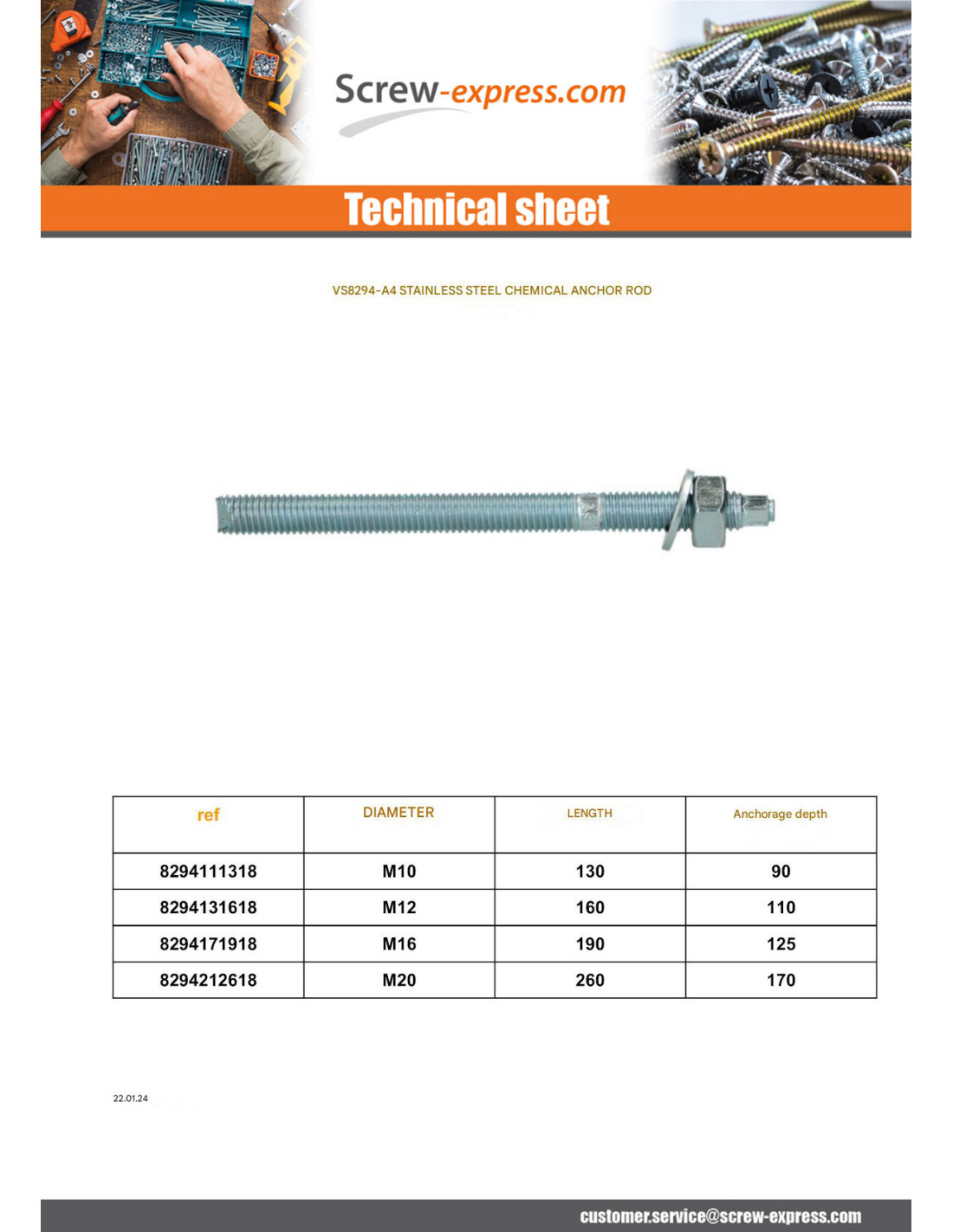 Threaded Rod Anchor CHEMICAL M10X130 Stainless Steel A4 Other Reference : SM00AS 3663072521209