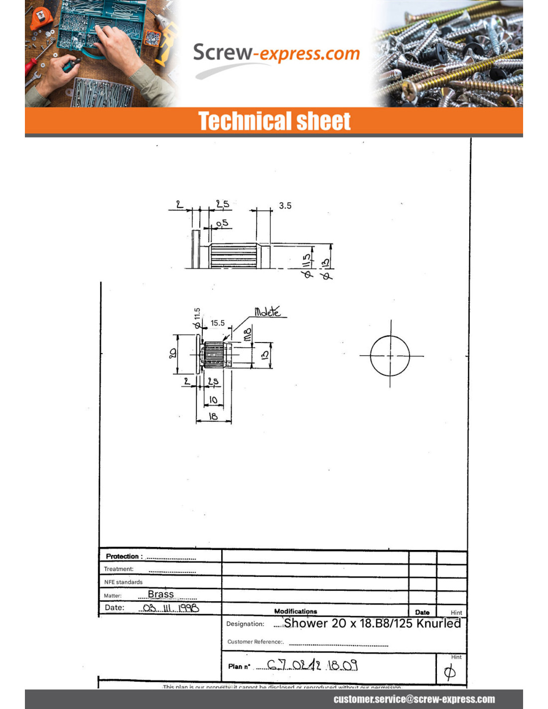 Nut Bookbinder Knurled Brass M8 Head Diameter: 20 Lengh Under Head 16 Other Reference : 3663072121188 A317020