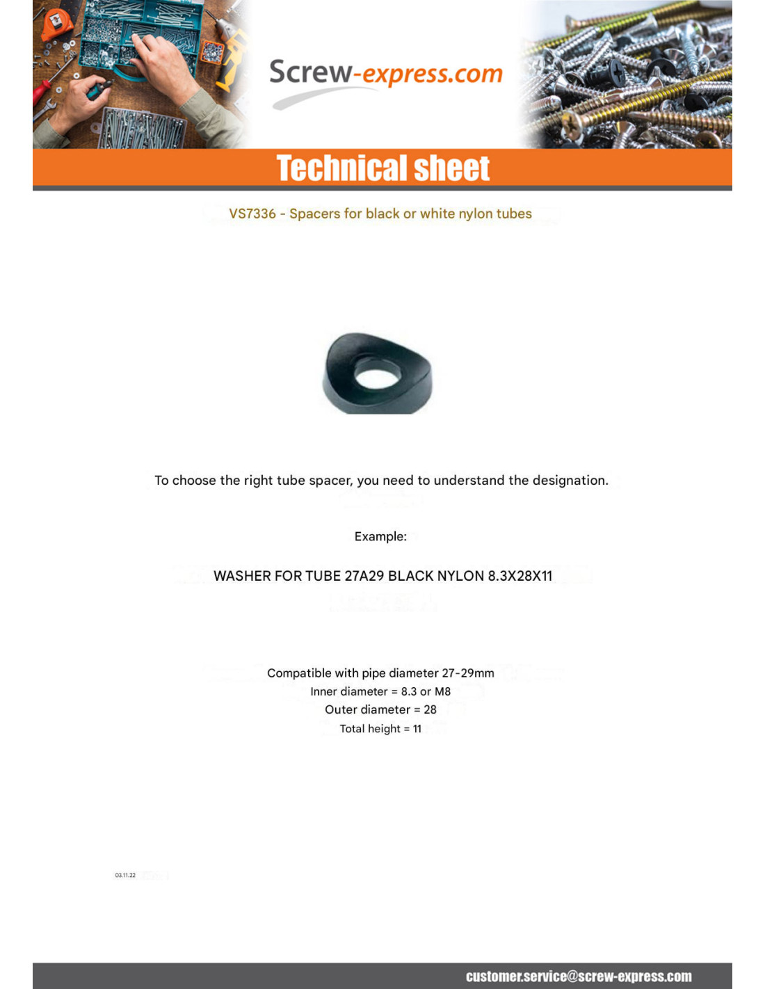 Washer Linch Pin Tube 27 to 29 natural nylon 8.3X28X11 Other Reference : 102029000001 3663072465381