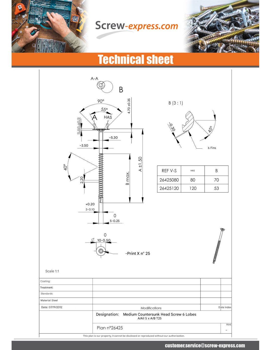 Screw Medium Countersunk Head With Serration T20 4X35 Thread Length: 24 Zinc Plated